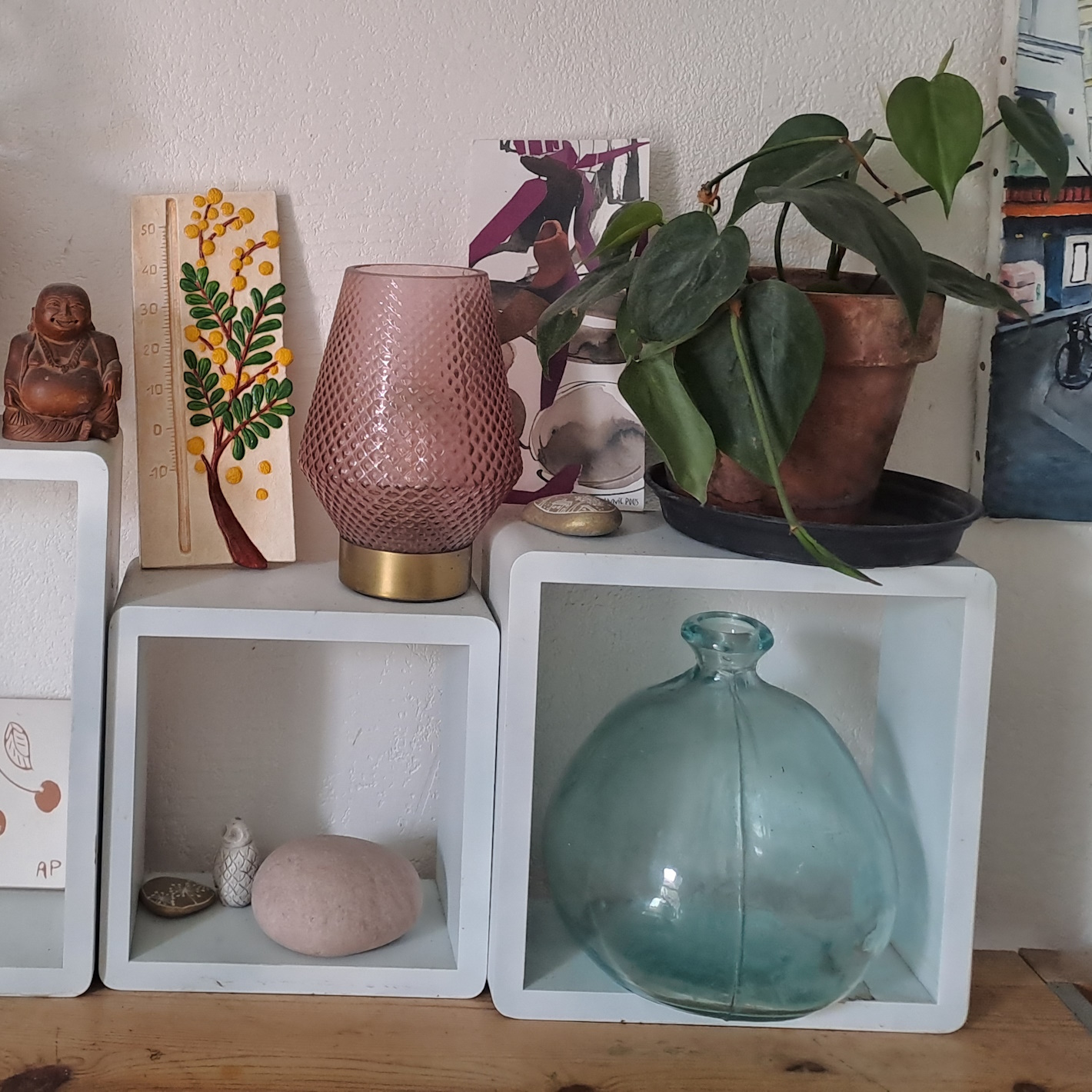 Nous avons toujours envie de fleurs. Fille du sud de la France, j’aime le mimosa depuis toujours, surtout celui qui refleuri en plein hiver. C ‘est alors du mimosa des quatre saisons. En effet sa floraison en janvier, avant même les amandiers, indique que le printemps arrive. C’est cette impression que j’ai voulu retranscrire en réalisant le thermomètre extérieur mimosa. Le retour annuel des beaux jours, l’espoir, au milieu des tempêtes d’un peu plus de douceur et de lumière. En plus, cette jolie fleur parfume efficacement les maisons. Son parfum chaud et poudré est riche et solaire. Que dire de sa couleur? Lumière, chaleur, soleil. Cela explique sans doute son symbolisme. Emblème du soleil, il incarne magnificence et puissance. Offrir un bouquet de mimosa, c’est aussi un signe d’amitié et de tendresse. Il évoque également l’énergie féminine, il est désormais associé au 8 mars, Journée internationale des femmes.